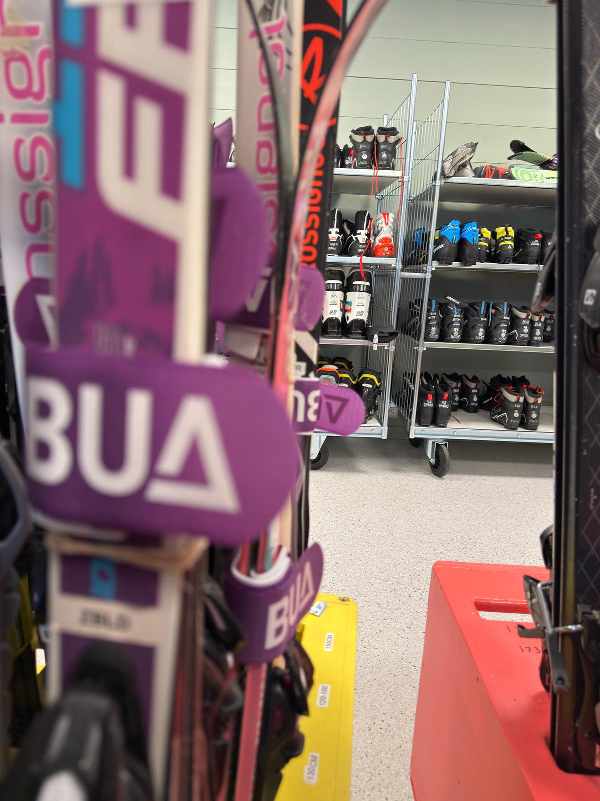 Hos BUA Lyngdal finner du blant annet ski, skøyter, snowboard, skateboard, hjelmer, telt, ryggsekker og annet utstyr til tur, lek og aktivitet. Utvalget kan variere etter sesong og tilgjengelighet.